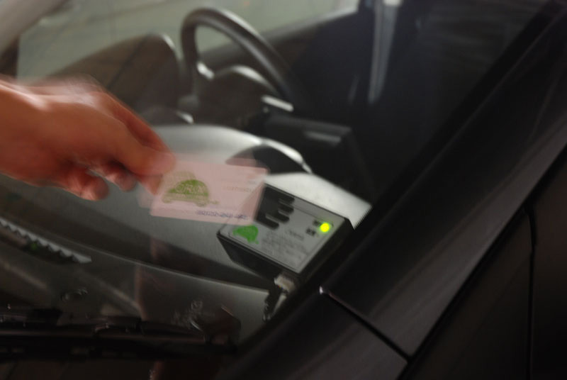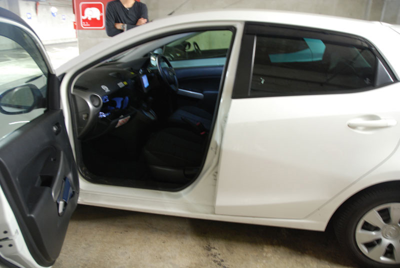 「クルマが複数台並んでいる時は、予約したクルマしか反応しないようになっているので、一度全てのクルマにICカードをかざして下さい。ドアロックが解除され、ハザードが点滅したクルマが予約したクルマです」