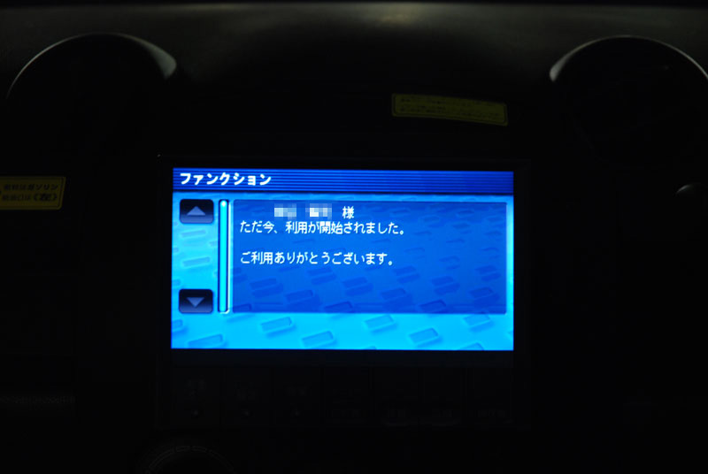 早速エンジンをかけるとカーナビの電源が入り、メッセージが表示されます。
